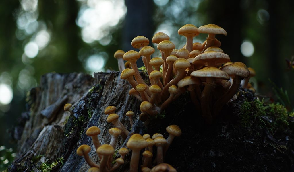 Download 1024x600 northern honey fungus, honey fungus, mushrooms, macro, stump, moss, nature wallpaper, background netbook, tablet