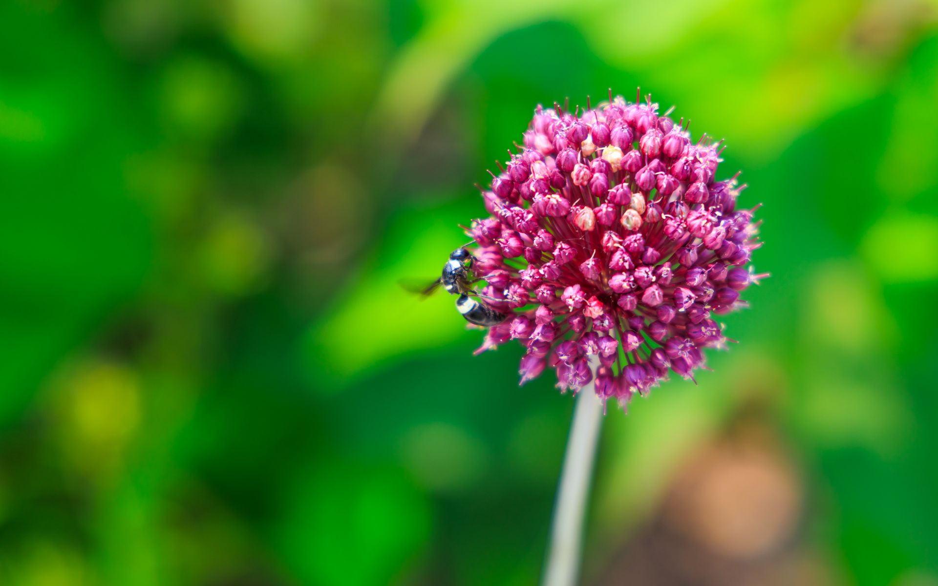 Download 1920x1200 onion, flower, bee, macro, purple wallpaper, background widescreen 16:10