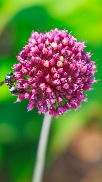 Download 360x640 onion, flower, bee, macro, purple wallpaper, background nokia n8, c5, c6, c7, e7, x6 nokia 5800, 5230, 5228, sony ericsson vivaz