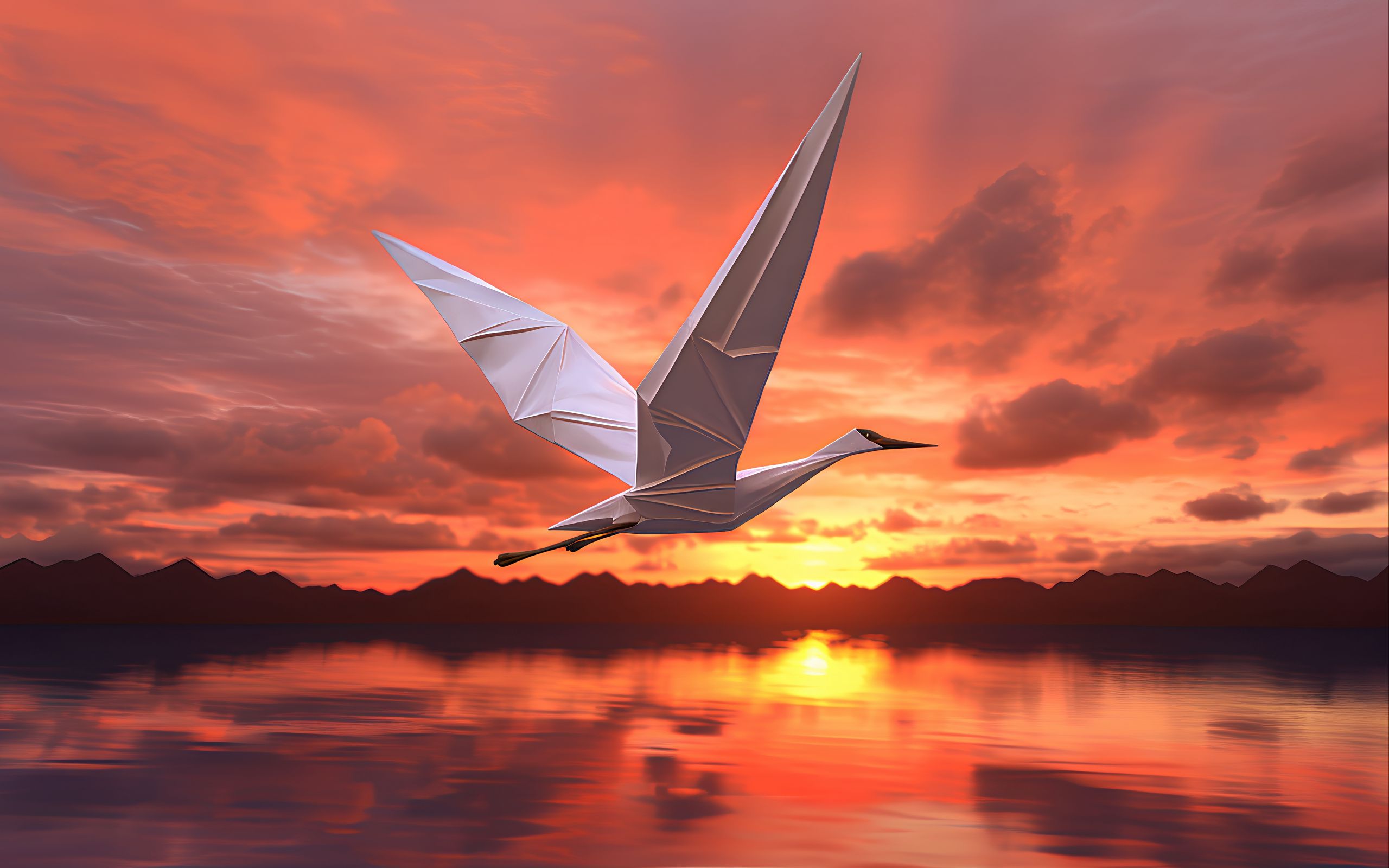 Download 2560x1600 origami, bird, sea, sunset wallpaper, background widescreen 16:10