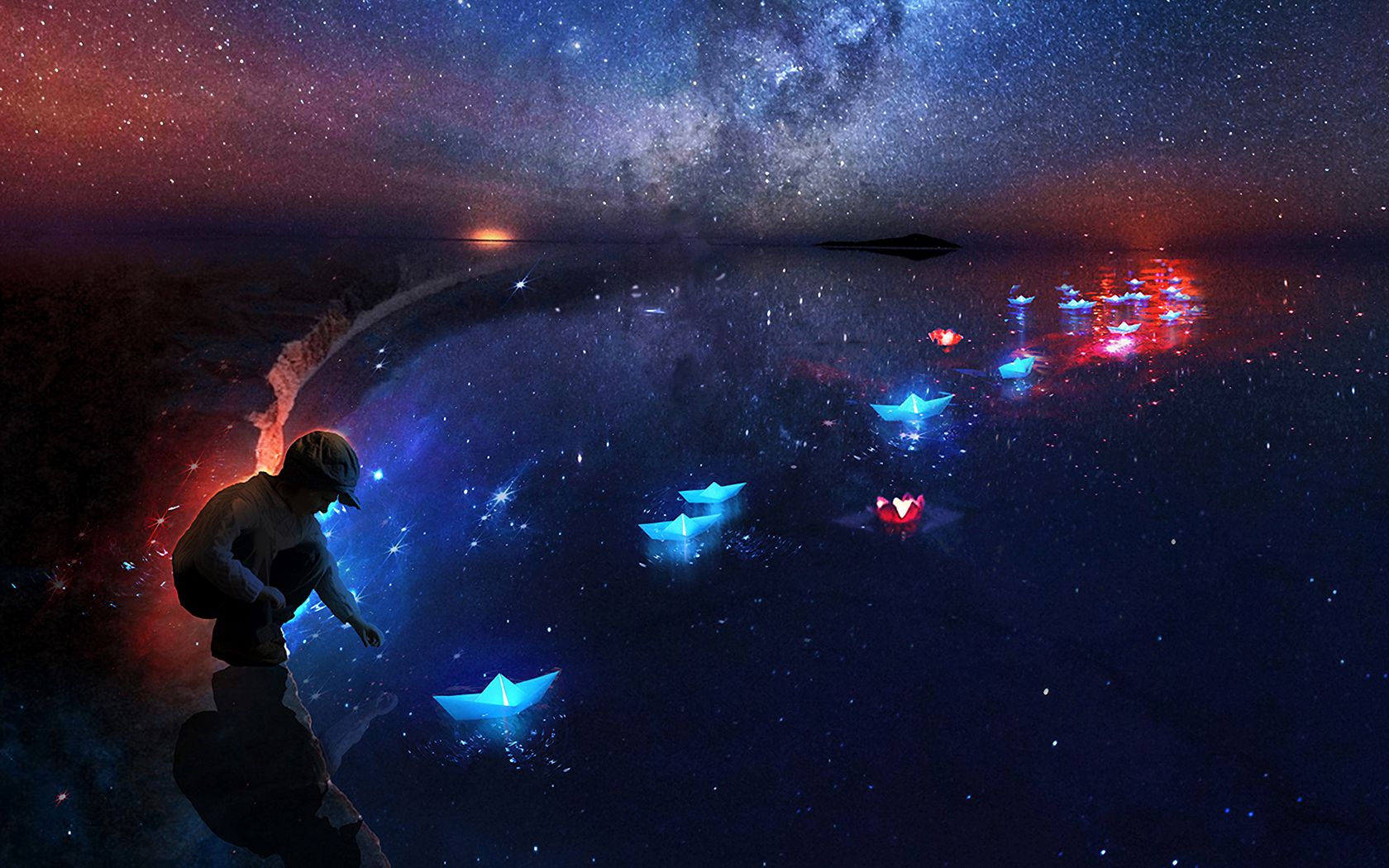 Download 1680x1050 origami, ships, space, art, child wallpaper, background widescreen 16:10
