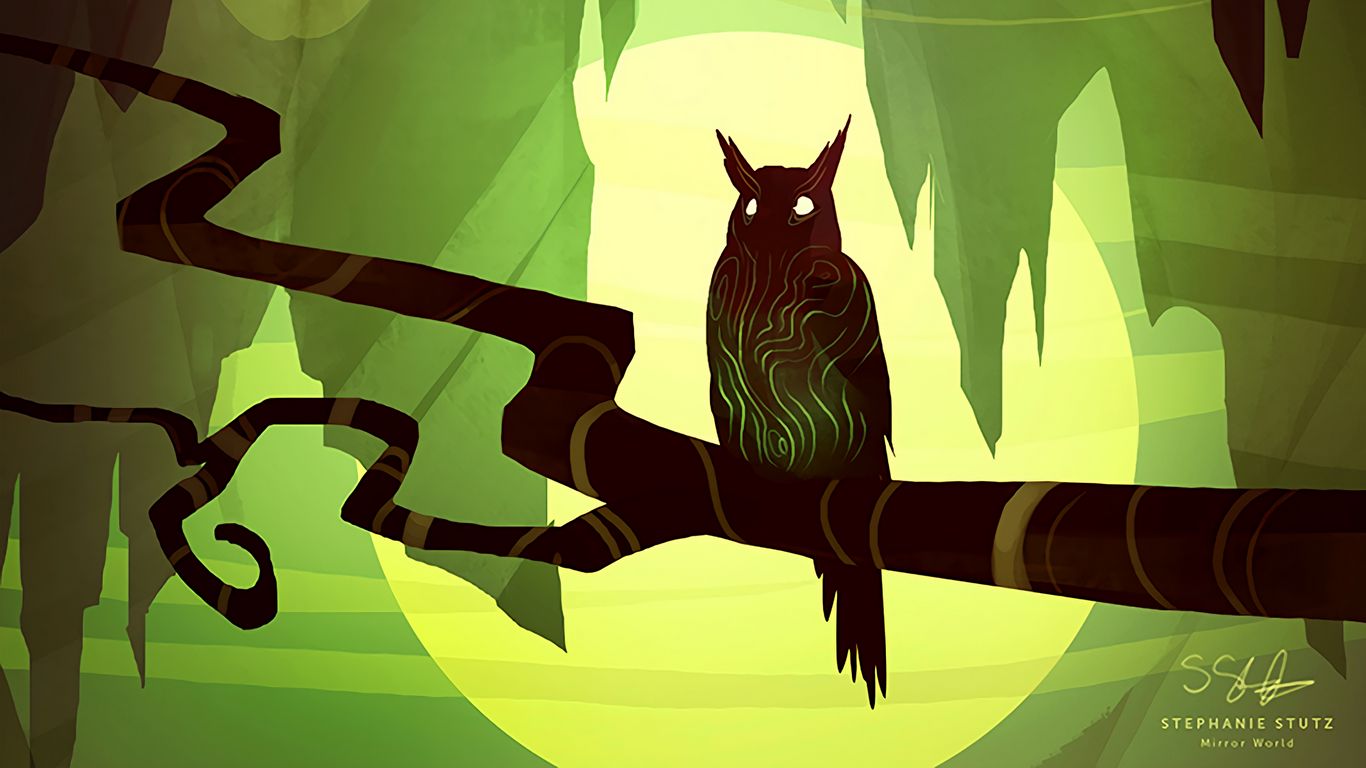 Download 1366x768 owl, art, branch, bird wallpaper, background tablet, laptop