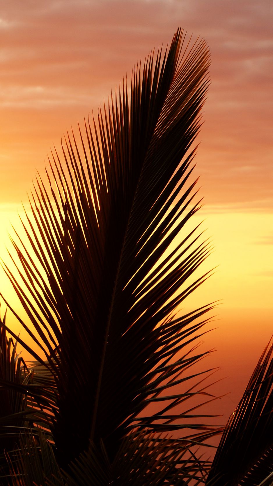 Download 938x1668 palm tree, branch, sunset, outline wallpaper, background iphone 8/7/6s/6 for parallax