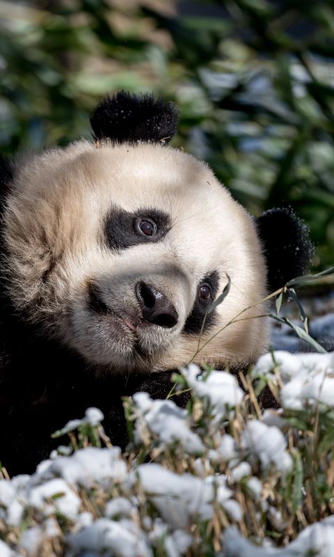 Download 480x800 panda, animal, grass, snow wallpaper, background nokia x, x2, xl, 520, 620, 820, samsung galaxy star, ace, asus zenfone 4