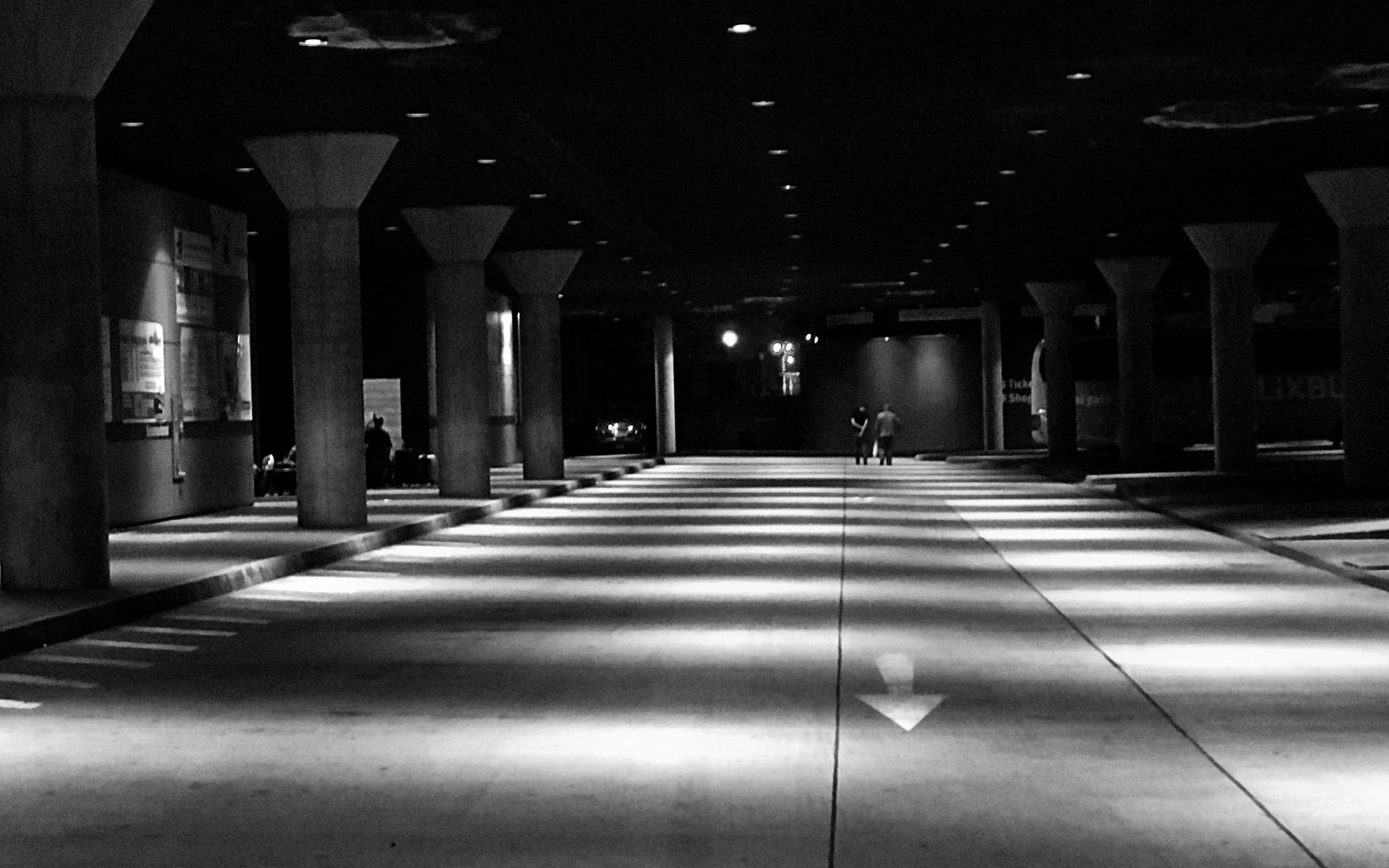 Download 2560x1600 parking, dark, bw, architecture, underground wallpaper, background widescreen 16:10