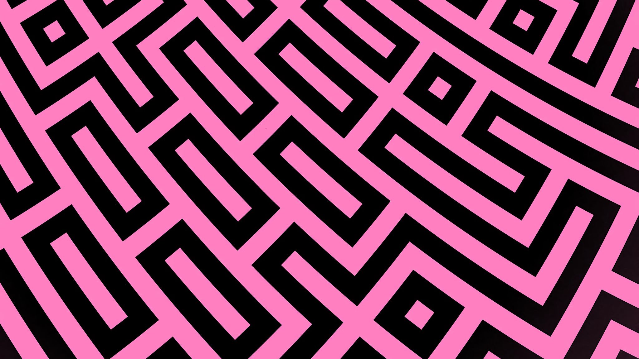 Download 2048x1152 pattern, geometric, lines, pink, black wallpaper, background ultrawide monitor