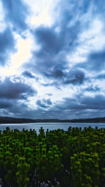 Download 360x640 pines, trees, branches, lake, clouds, landscape wallpaper, background nokia n8, c5, c6, c7, e7, x6 nokia 5800, 5230, 5228, sony ericsson vivaz