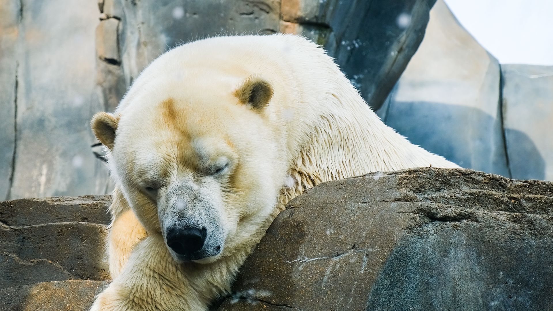 Download 1920x1080 polar bear, bear, animal, stone, white wallpaper, background full hd, hdtv, fhd, 1080p