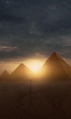 Download 240x400 pyramids, sun, desert, silhouette, sunset wallpaper, background nokia asha 311, samsung galaxy 580, omnia, lg kp500