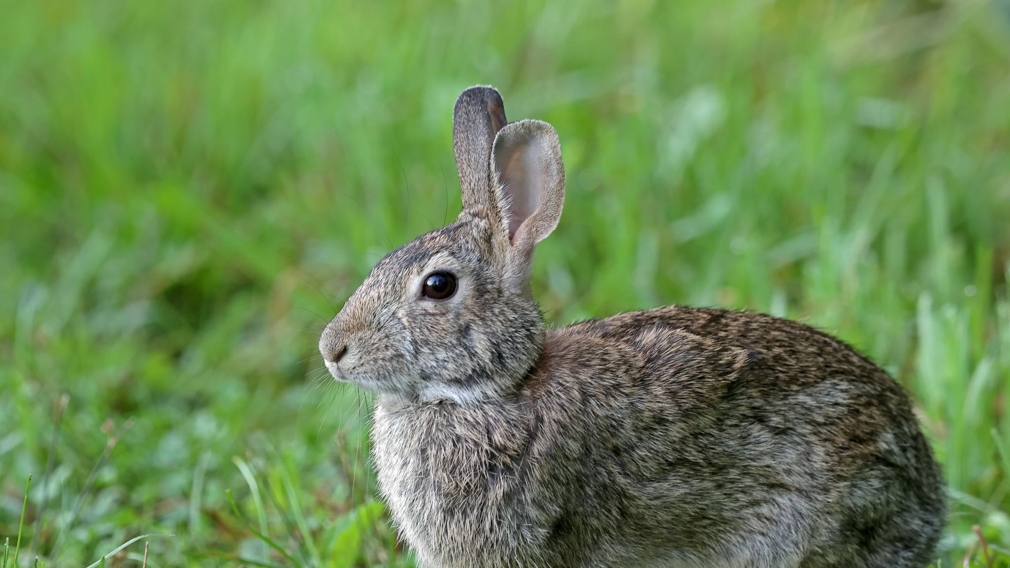 Download 2048x1152 rabbit, animal, cute, grass wallpaper, background ultrawide monitor