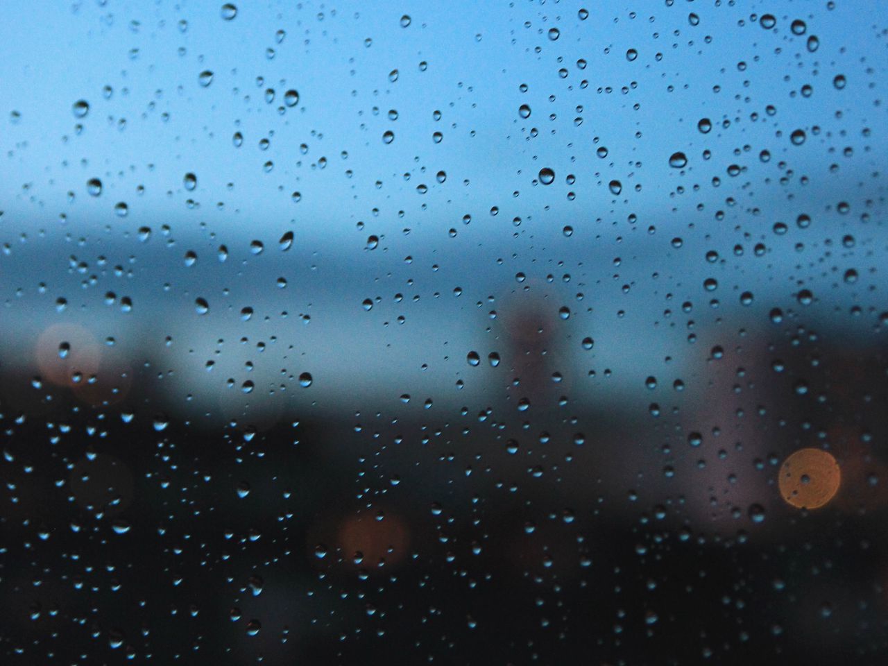 Download 1280x960 rain, glass, drops, wet, city, macro wallpaper, background standard 4:3