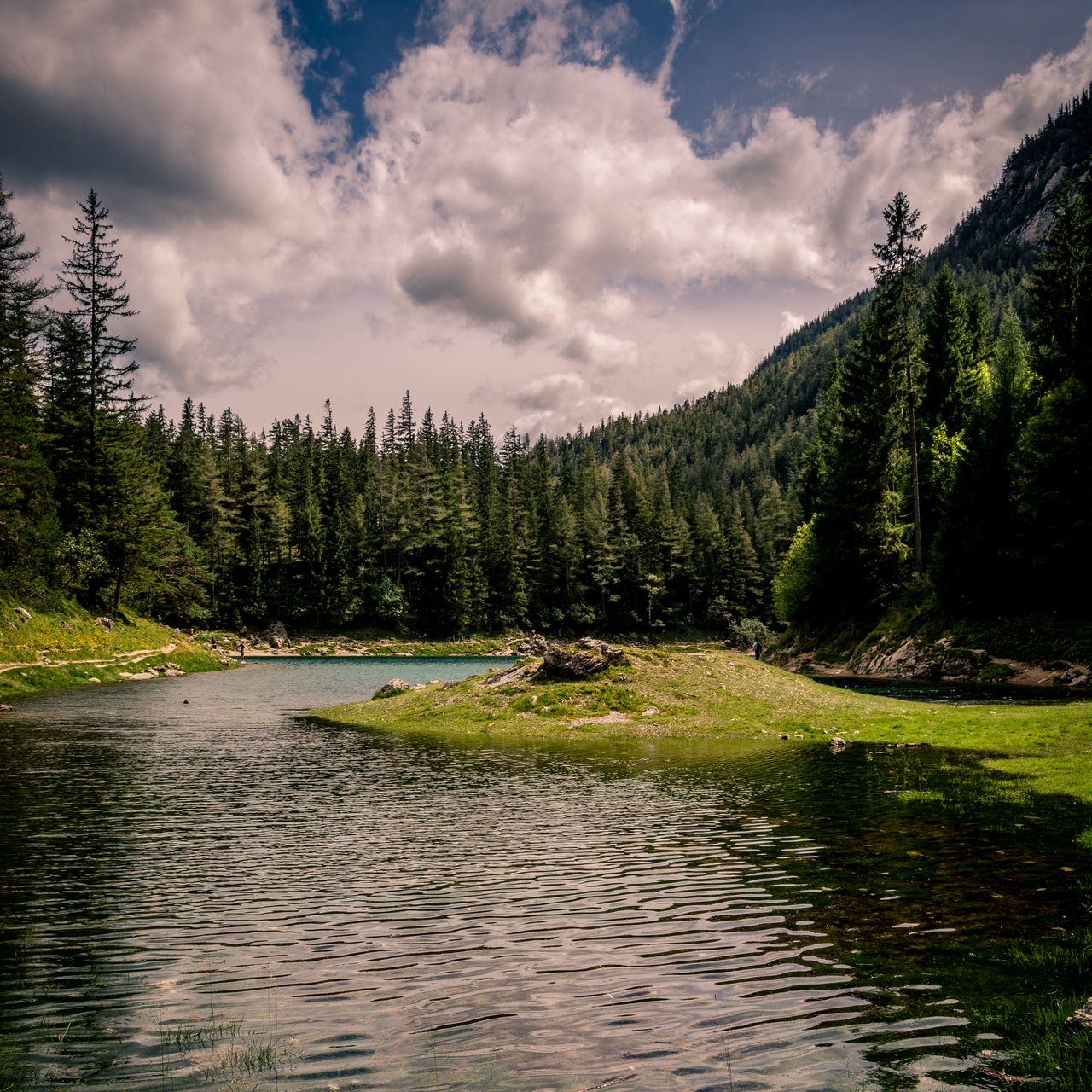 Download 1280x1280 river, forest, trees, grass wallpaper, background ipad, ipad 2, ipad mini for parallax