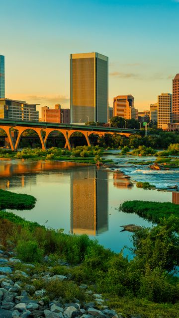 Download 360x640 river, greens, bridge, buildings, city, sunset wallpaper, background nokia n8, c5, c6, c7, e7, x6 nokia 5800, 5230, 5228, sony ericsson vivaz