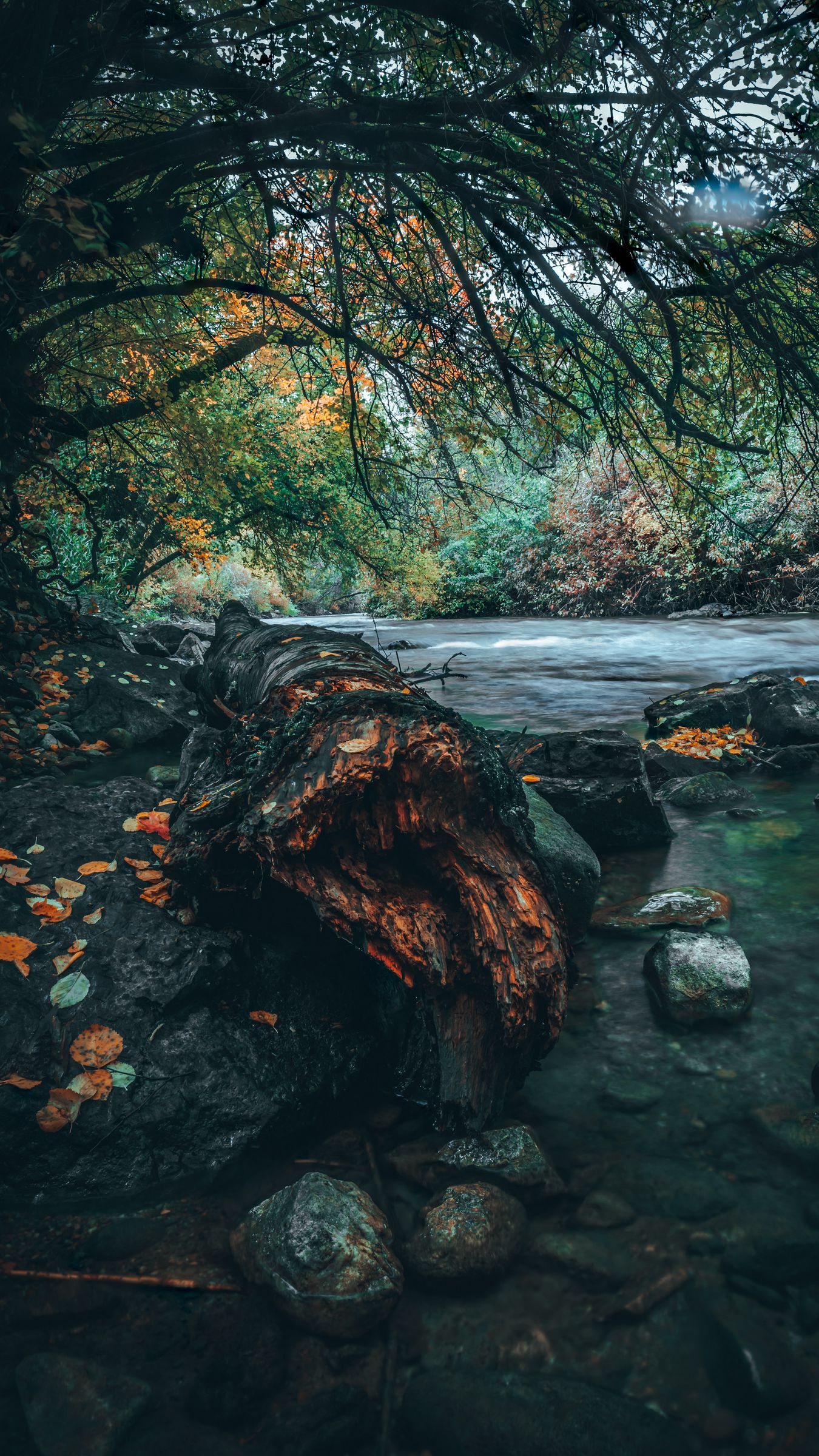 Download 1350x2400 river, stones, trees, shore, water, landscape wallpaper, background iphone 8+/7+/6s+/6+ for parallax