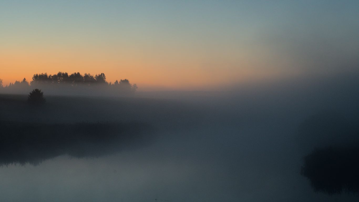 Download 1366x768 river, trees, fog, landscape, nature wallpaper, background tablet, laptop