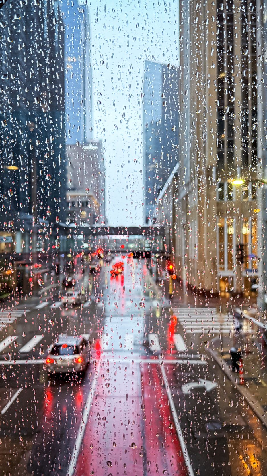 Download 938x1668 road, buildings, window, drops, rain, city wallpaper, background iphone 8/7/6s/6 for parallax