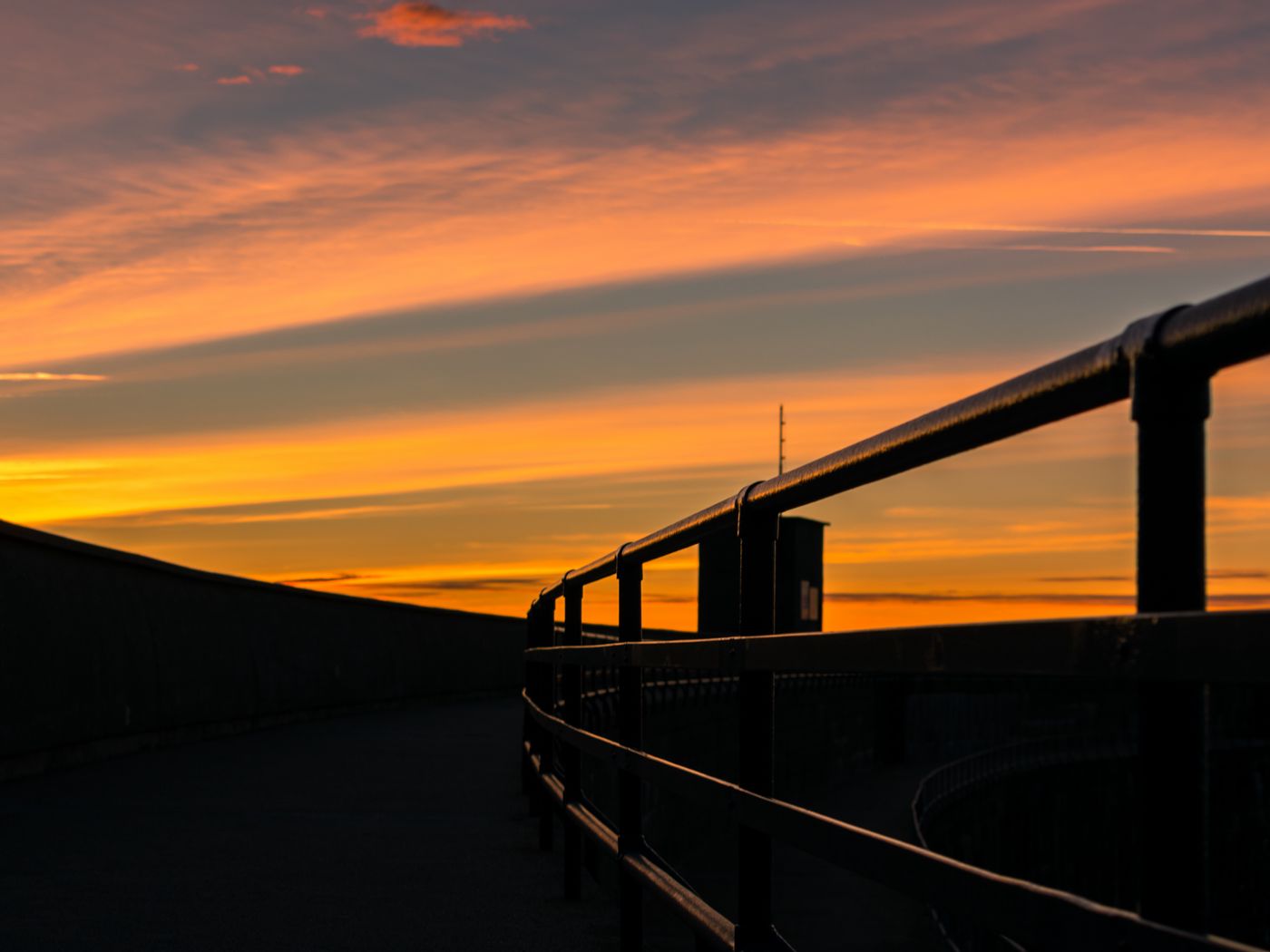 Download 1400x1050 road, railing, twilight, dark wallpaper, background standard 4:3