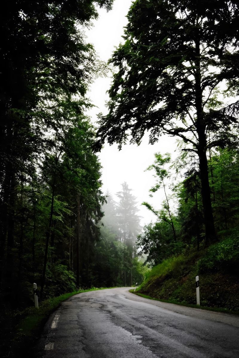 Download 800x1200 road, turn, trees, fog wallpaper, background iphone 4s/4 for parallax