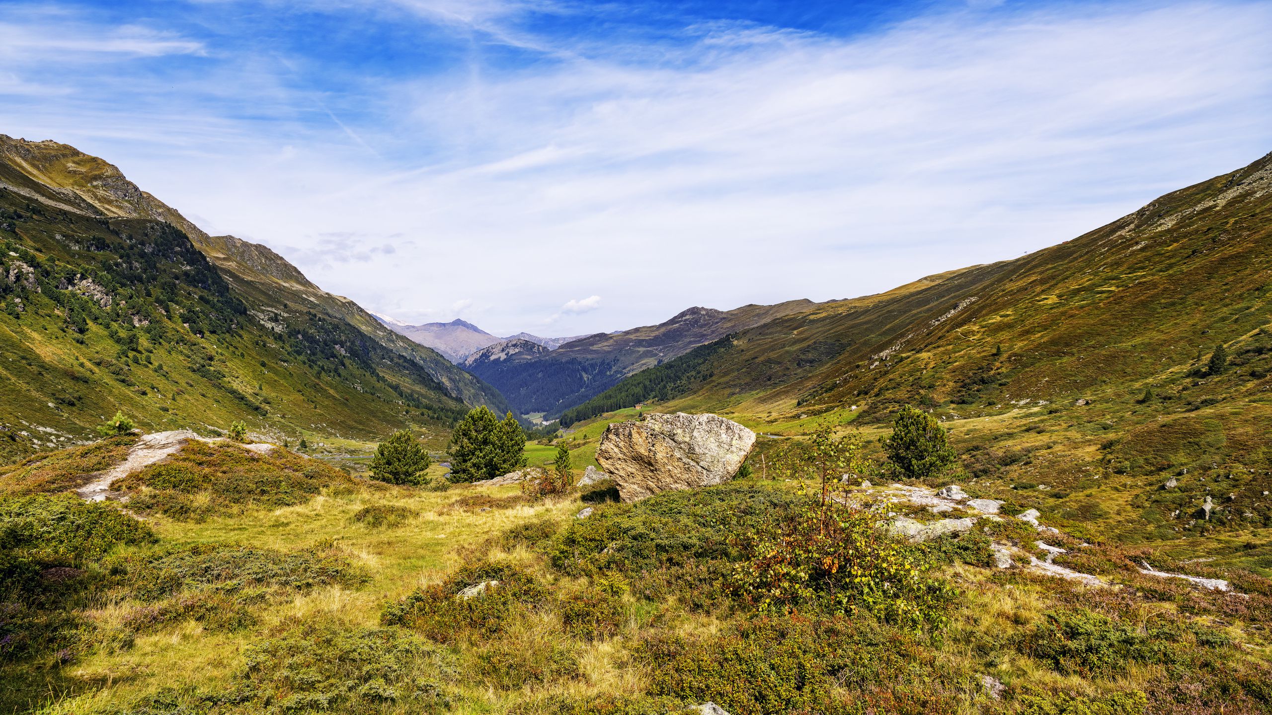 Download 2560x1440 rock, valley, landscape, nature, mountains wallpaper, background widescreen 16:9