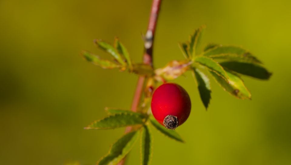 Download 960x544 rosehip, berries, leaves, branches, macro wallpaper, background playstation ps vita