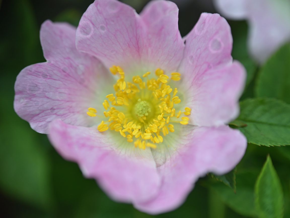 Download 1152x864 rosehip, flower, petals, leaves, macro, pink wallpaper, background standard 4:3