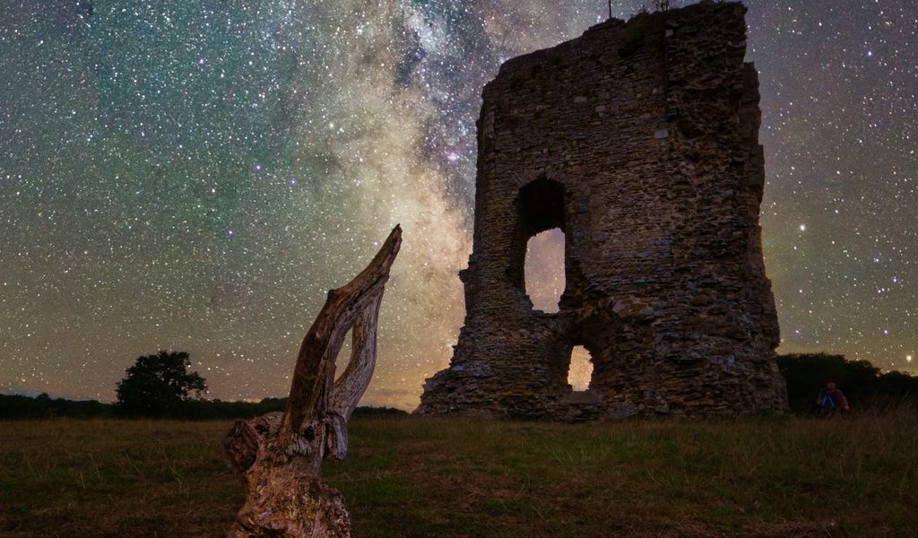 Download 1024x600 ruins, driftwood, nebula, stars, night wallpaper, background netbook, tablet