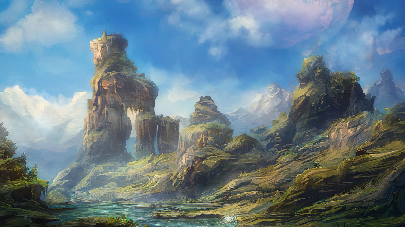 Download 1366x768 ruins, rock, art wallpaper, background tablet, laptop
