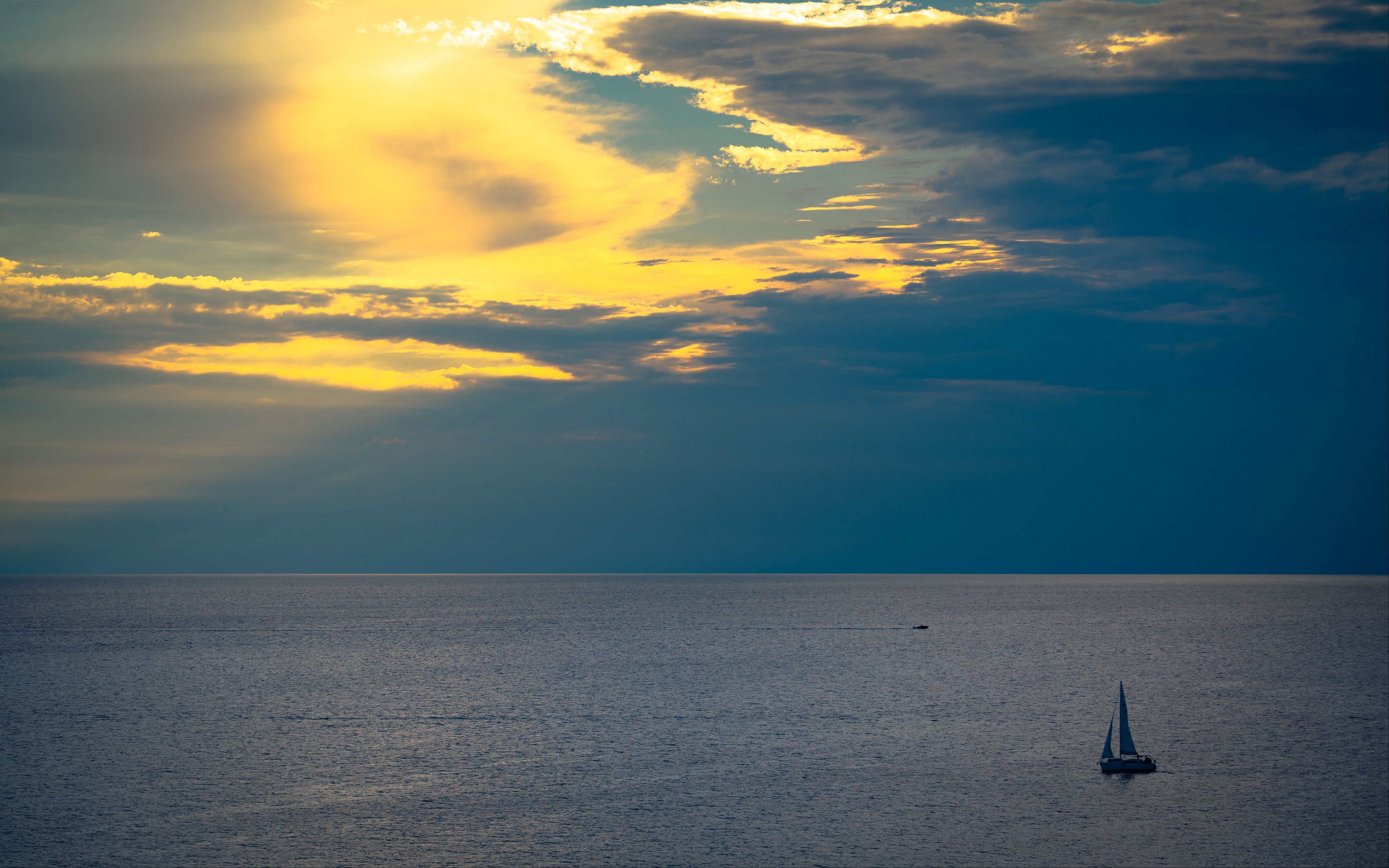 Download 3840x2400 sailboat, horizon, sea, water wallpaper, background 4k ultra hd 16:10
