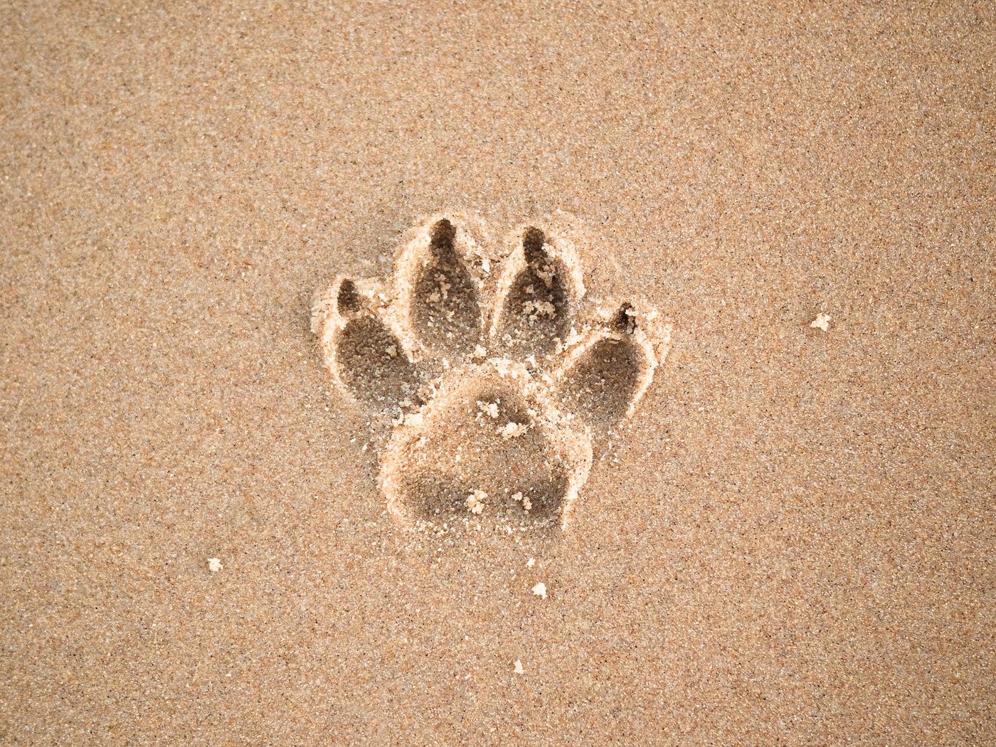 Download 1400x1050 sand, imprint, paw, animal wallpaper, background standard 4:3