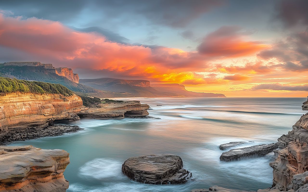 Download 1280x800 sea, bay, rocks, clouds wallpaper, background widescreen 16:10