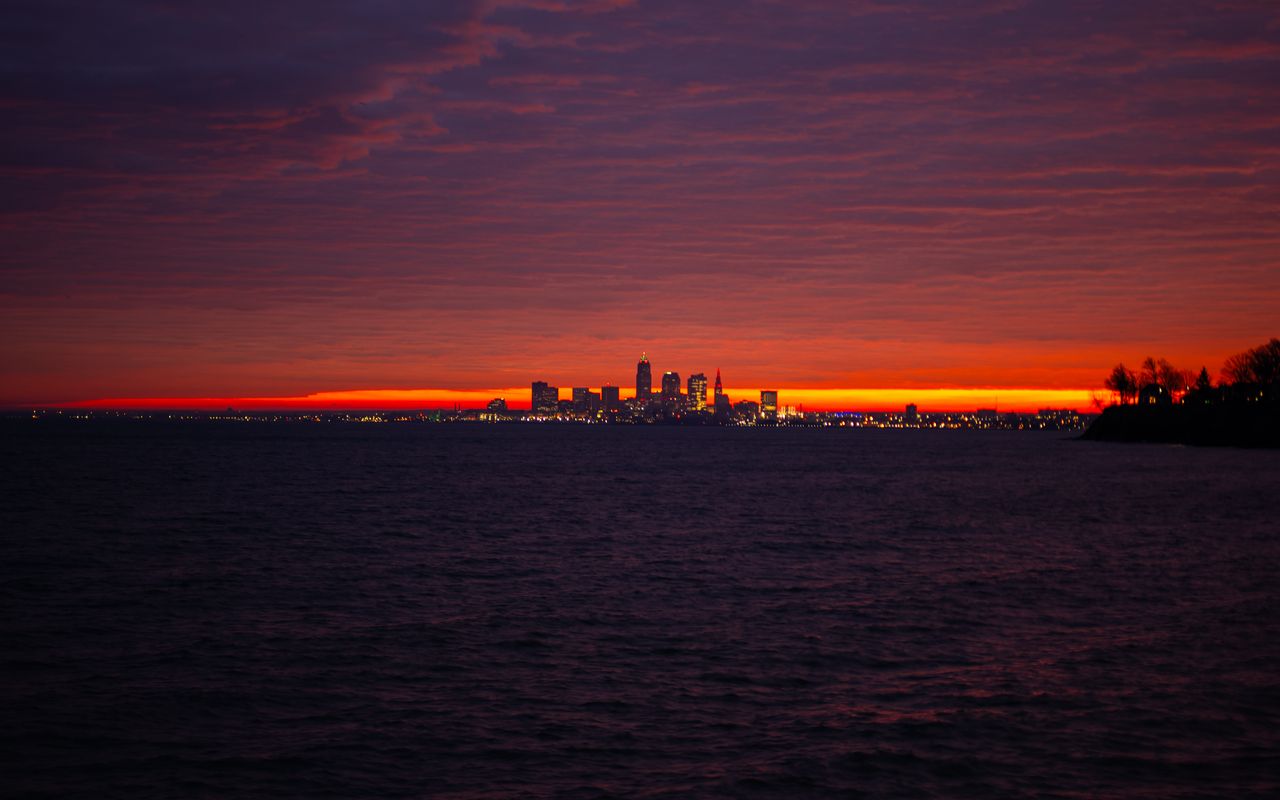 Download 1280x800 sea, city, lights, buildings, dark wallpaper, background widescreen 16:10