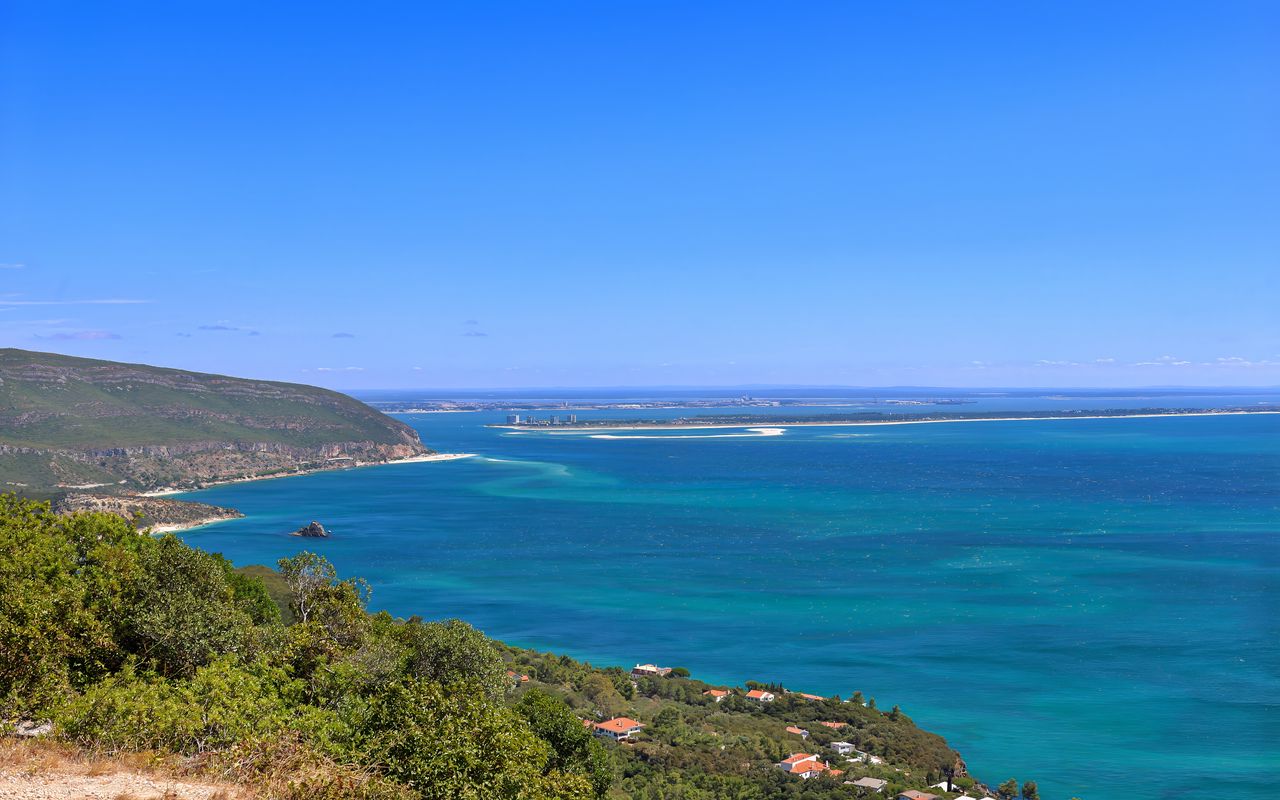 Download 1280x800 sea, hills, horizon, sky, nature wallpaper, background widescreen 16:10