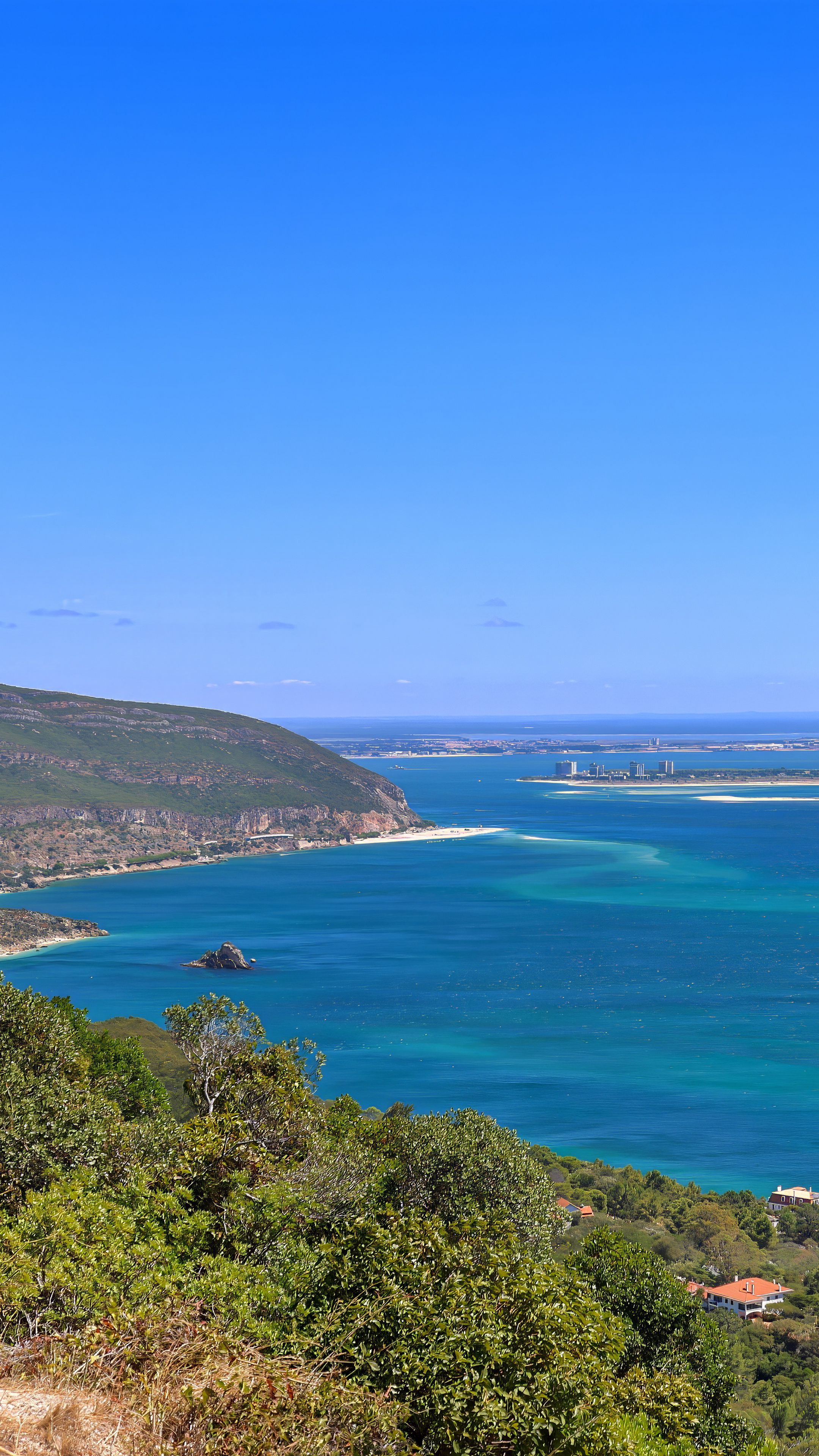 Download 2160x3840 sea, hills, horizon, sky, nature wallpaper, background samsung galaxy s4, s5, note, sony xperia z, z1, z2, z3, htc one, lenovo vibe