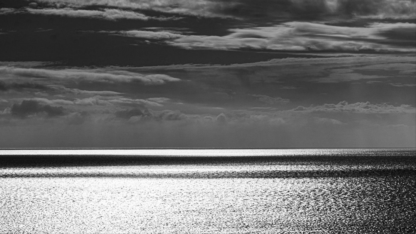 Download 1366x768 sea, horizon, sky, bw wallpaper, background tablet, laptop