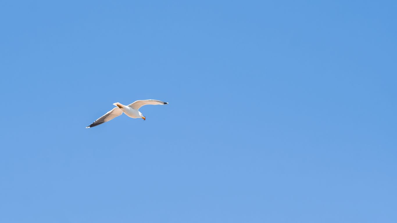Download 1366x768 seagull, bird, sky, minimalism, blue wallpaper, background tablet, laptop