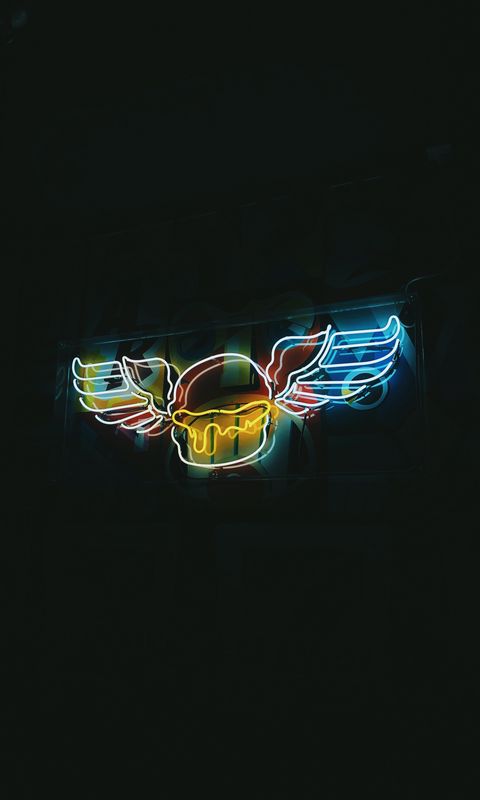 Download 480x800 sign, wings, neon, backlight, night wallpaper, background nokia x, x2, xl, 520, 620, 820, samsung galaxy star, ace, asus zenfone 4