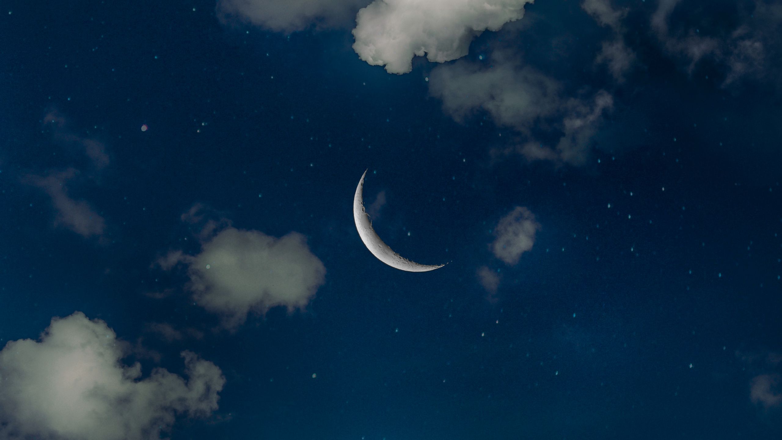 Download 2560x1440 sky, moon, clouds, stars, night wallpaper, background widescreen 16:9