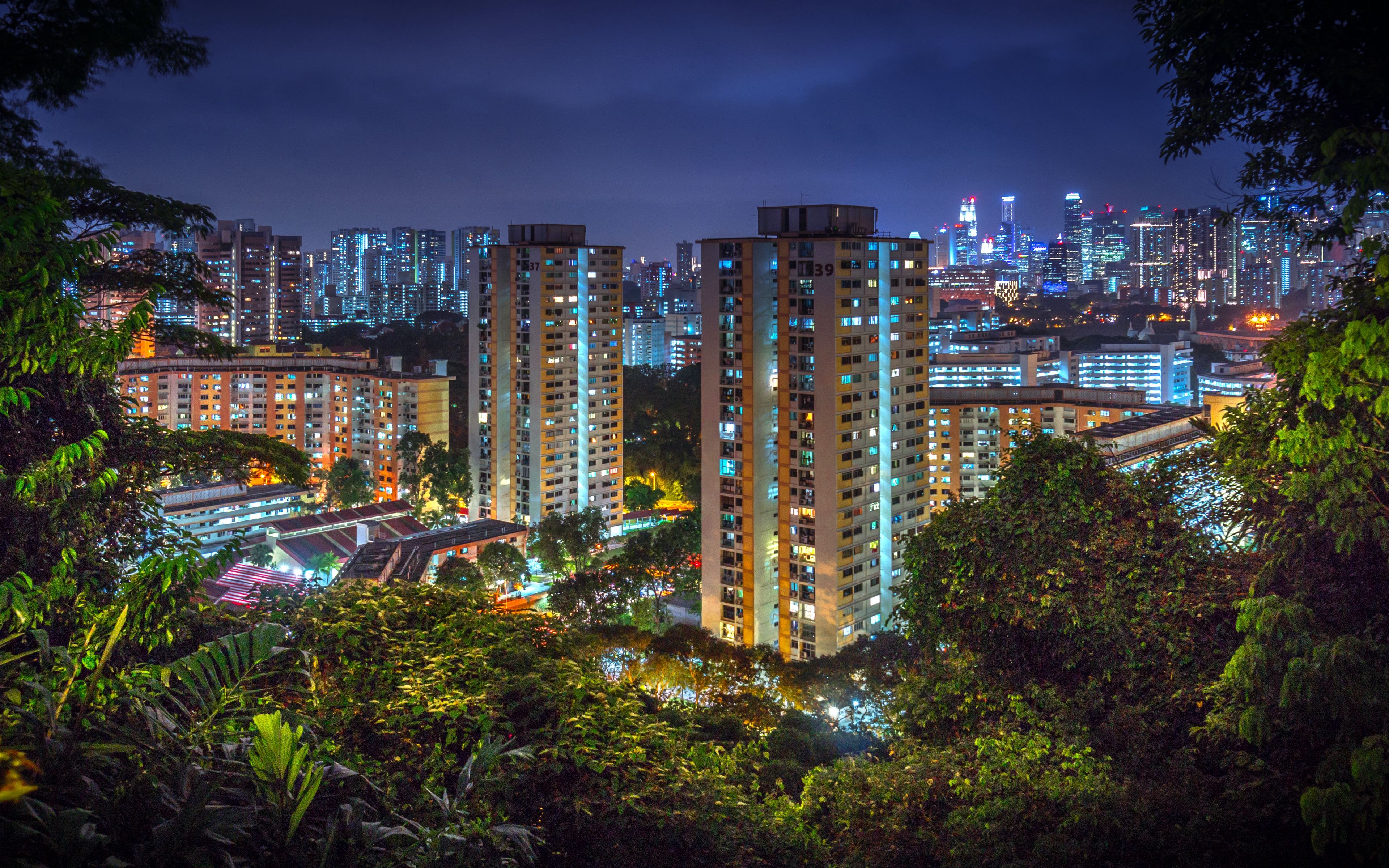 Download 3840x2400 skyscraper, buildings, city, night, trees wallpaper, background 4k ultra hd 16:10