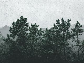 Download 320x240 snowfall, trees, fog, snow wallpaper, background nokia e72, e71, asha, alcatel onetouch
