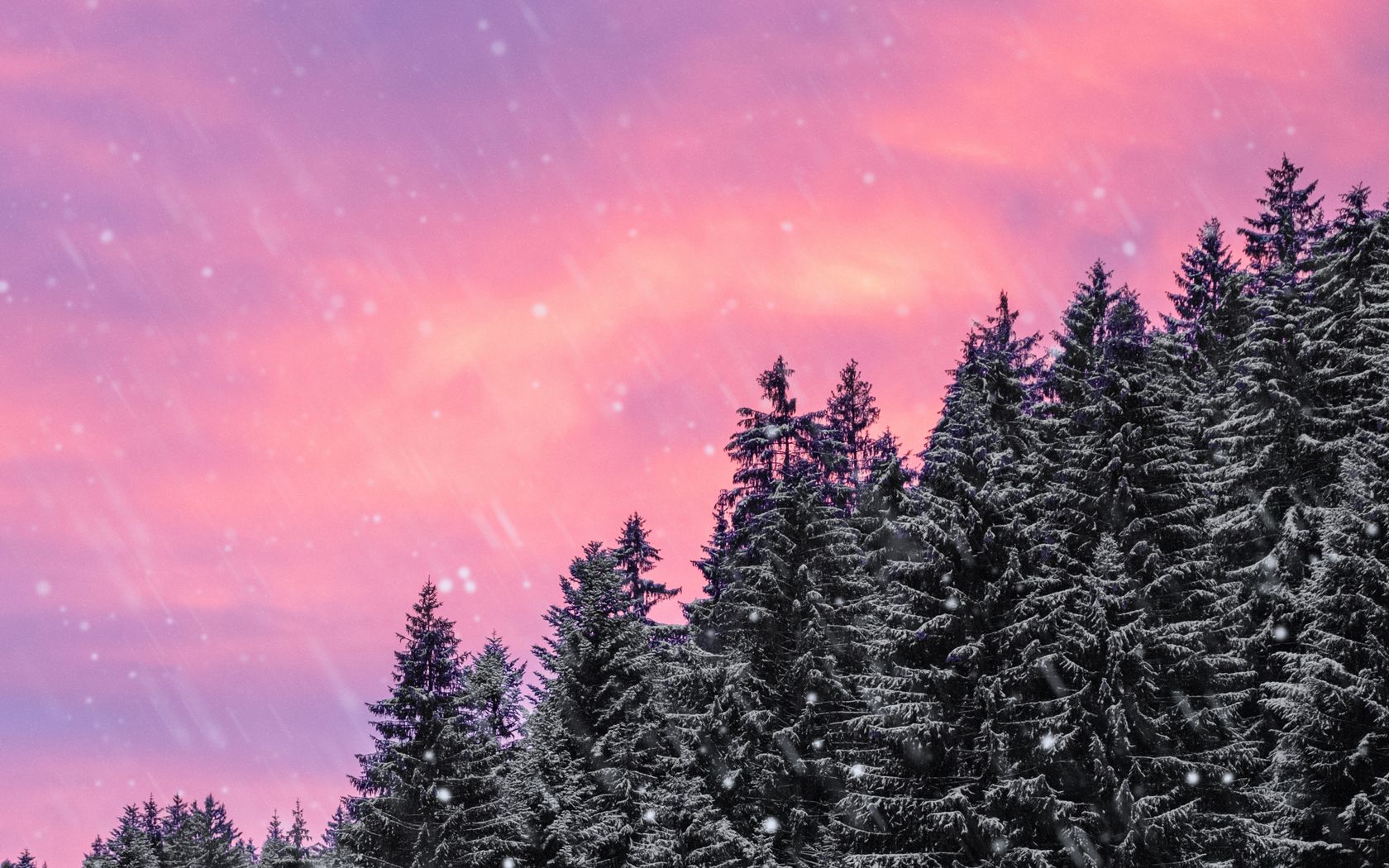 Download 1680x1050 spruce, snow, snowfall, sky, winter, forest wallpaper, background widescreen 16:10