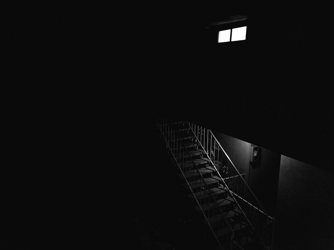 Download 1280x960 stairs, dark, bw, room wallpaper, background standard 4:3