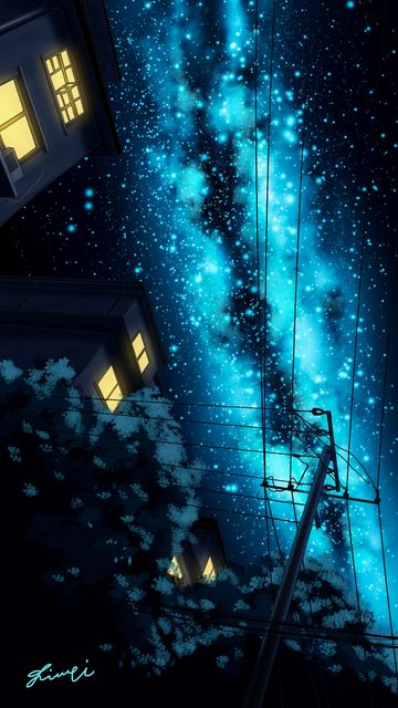 Download 360x640 starry sky, night, art, pillar, wires, buildings wallpaper, background nokia n8, c5, c6, c7, e7, x6 nokia 5800, 5230, 5228, sony ericsson vivaz