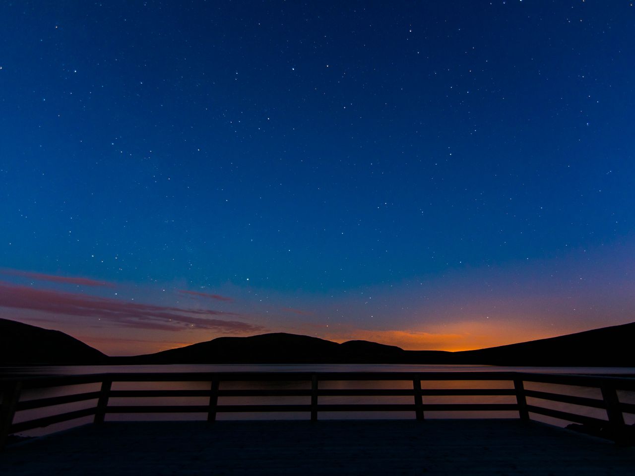 Download 1280x960 starry sky, railing, stars, mountains wallpaper, background standard 4:3