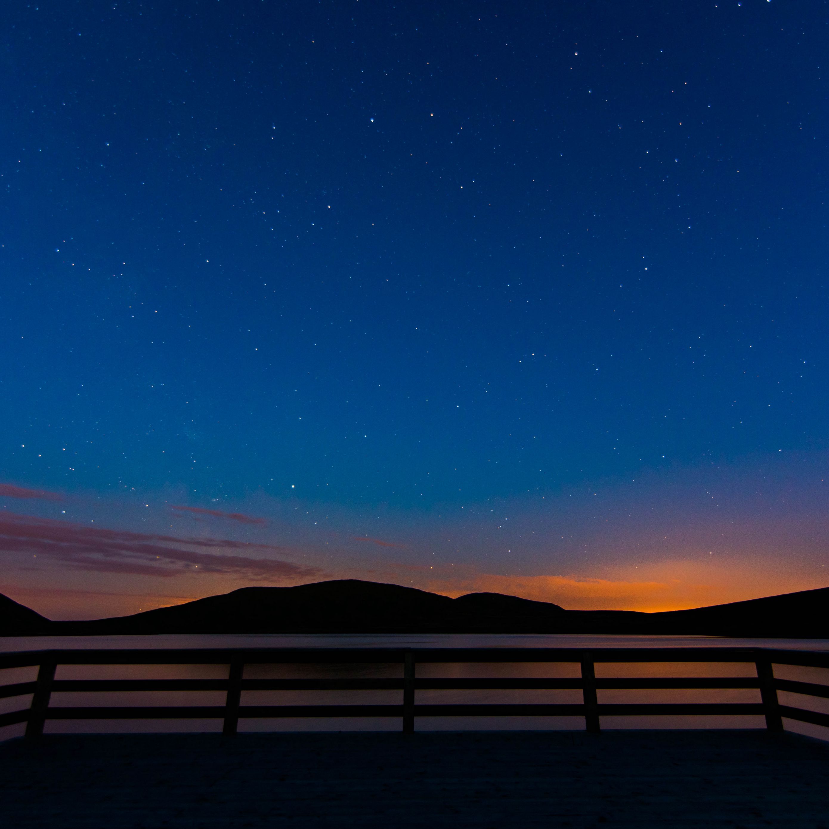 Download 2780x2780 starry sky, railing, stars, mountains wallpaper, background ipad air, ipad air 2, ipad 3, ipad 4, ipad mini 2, ipad mini 3, ipad mini 4, ipad pro 9.7" for parallax