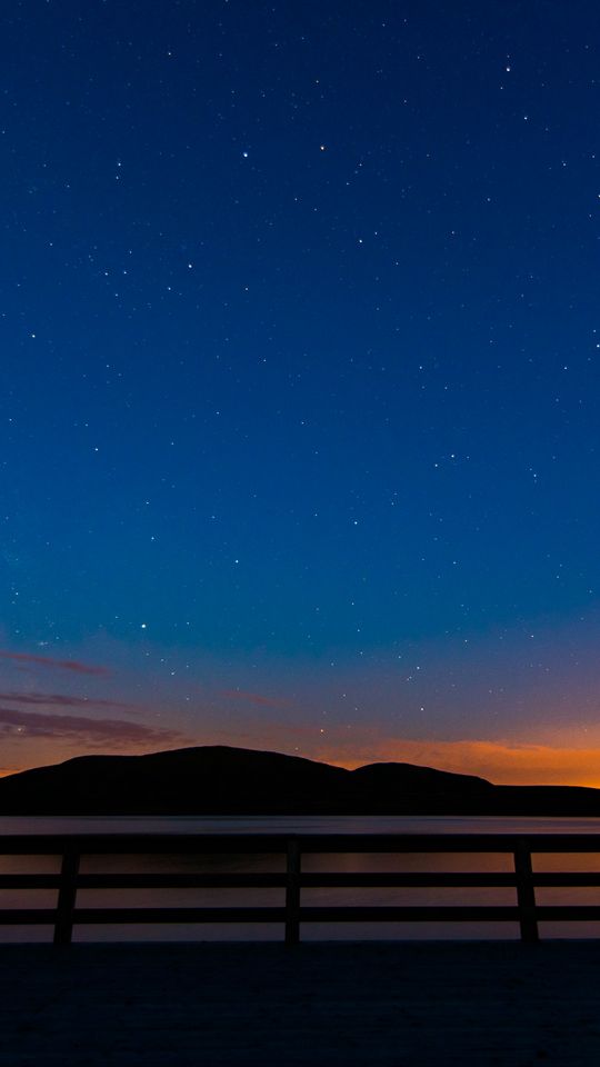 Download 540x960 starry sky, railing, stars, mountains wallpaper, background samsung galaxy s4 mini, microsoft lumia 535, philips xenium, lg l90, htc sensation
