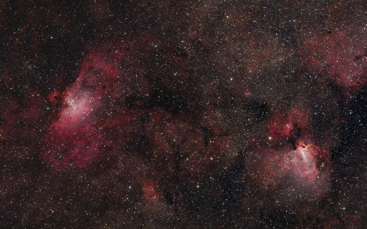 Download 1280x800 stars, nebulae, glitter, red, dark, space wallpaper, background widescreen 16:10