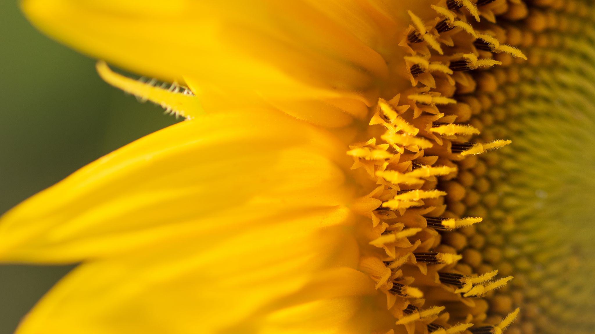 Download 2048x1152 sunflower, petals, flower, yellow, macro wallpaper, background ultrawide monitor