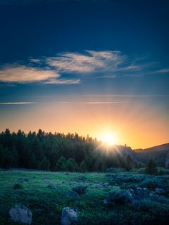 Download 240x320 sunrise, forest, mountains, landscape, sunlight wallpaper, background old mobile, cell phone, smartphone