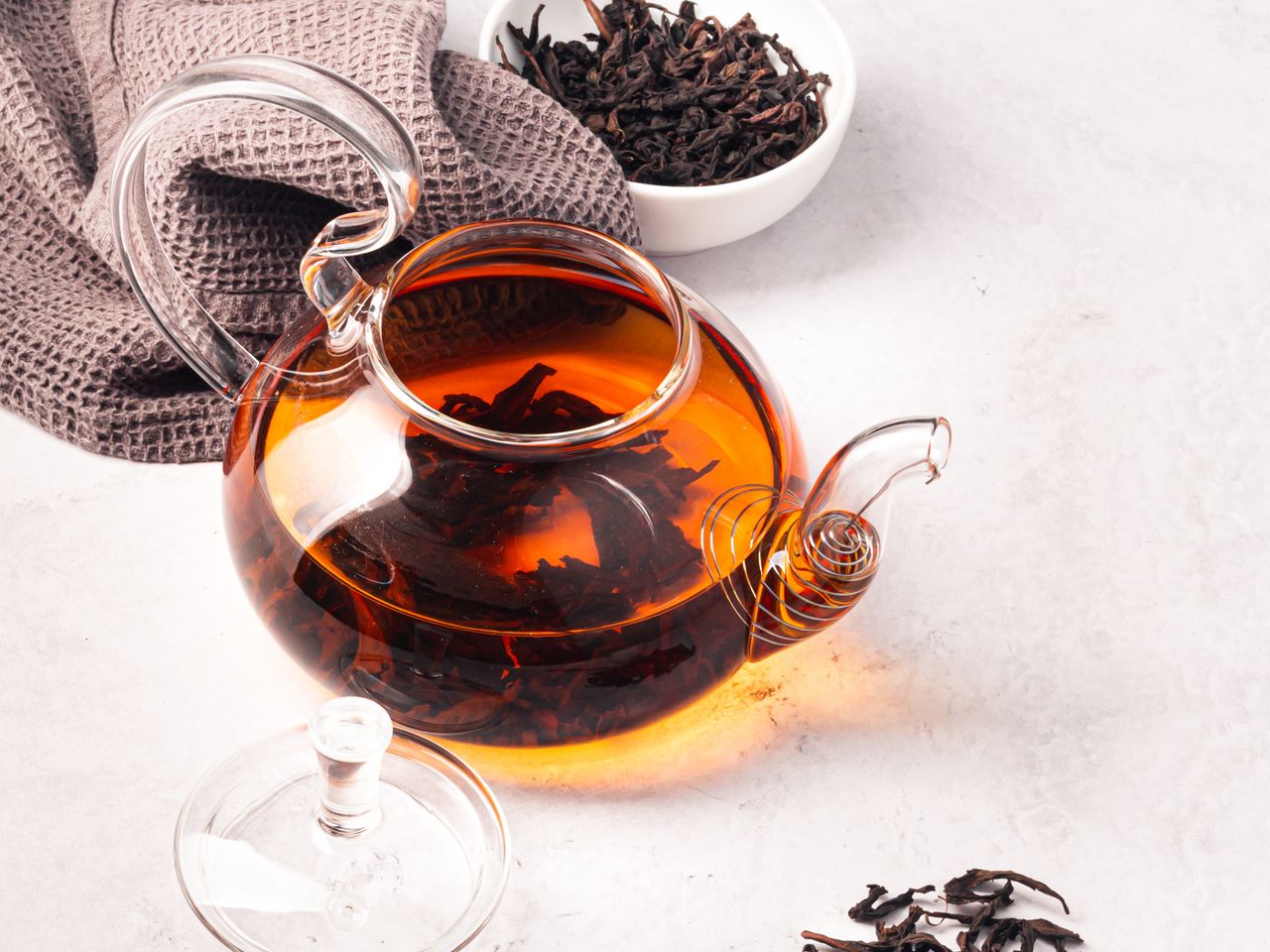 Download 1280x960 tea, teapot, leaves, spoon, aesthetics wallpaper, background standard 4:3