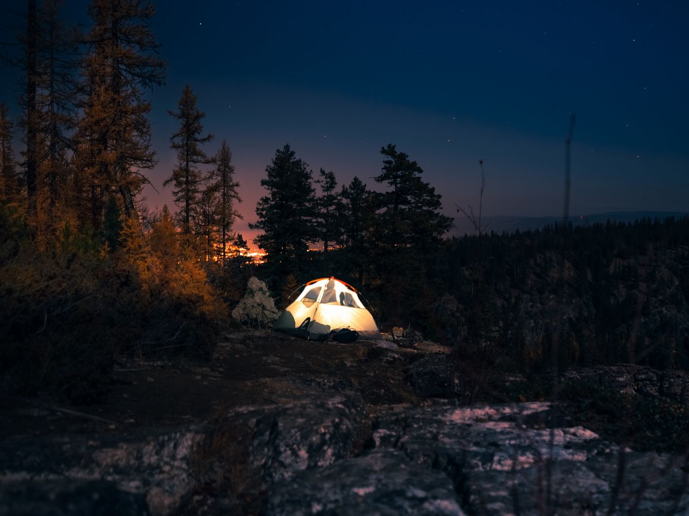 Download 1400x1050 tent, starry sky, night, camping, trees wallpaper, background standard 4:3